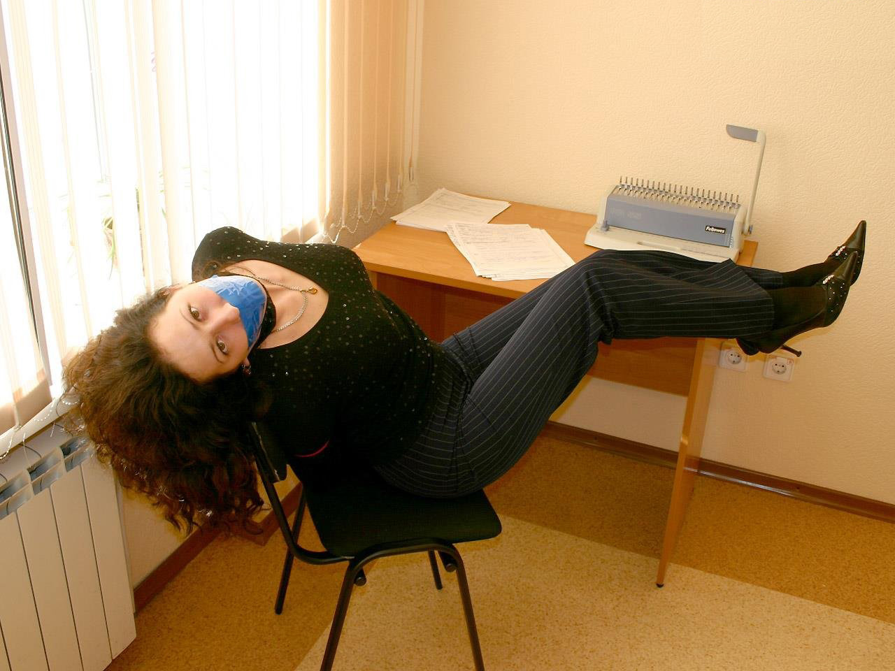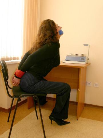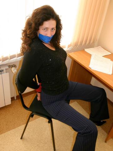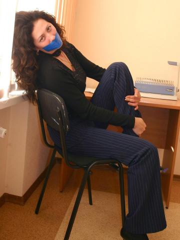 Office Lady Bondage in Tight Striped Pants