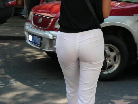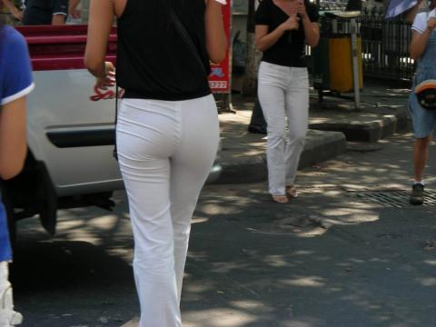 Streetsnap Perfect Hips in White Pants 街拍白色紧身薄裤极品美臀