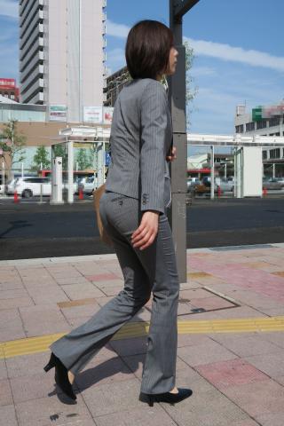 Japanese Streetsnap Gray Pantsuit 素人エロ街撮り盗撮OLさんのパンツスーツのお尻