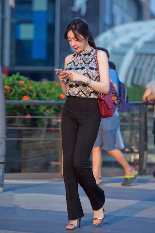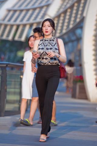 Streetsnap Young Woman in Black Pants 街拍黑裤凉高气质少妇