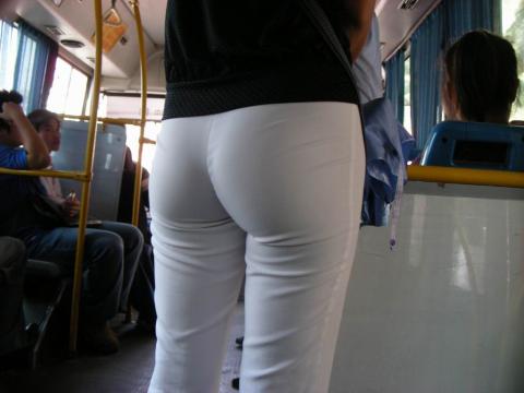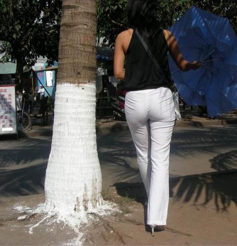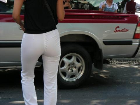 Streetsnap Perfect Hips in White Pants 街拍白色紧身薄裤极品美臀