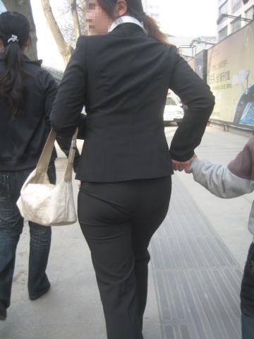 Streetsnap Black OL Uniform Pants 街拍黑色职业装少妇美臀
