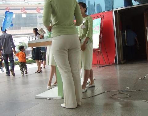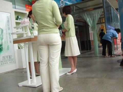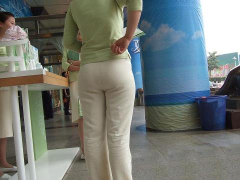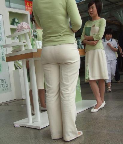 Streetsnap Saleswoman of Baicaoji with Plump Hips 佰草集营业员白裤丰臀