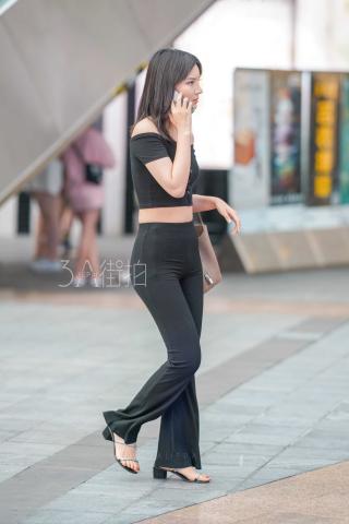Streetsnap Busty Hips in Black Pants 街拍黑色维拉裤紧致身材