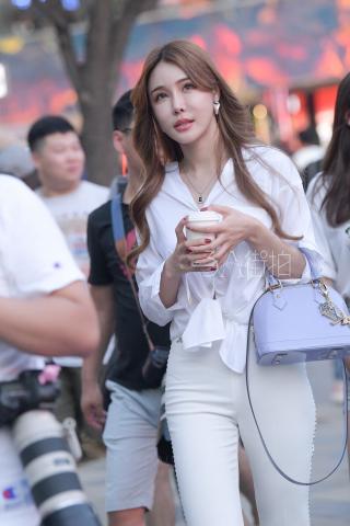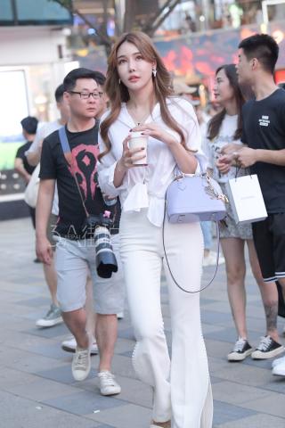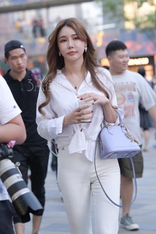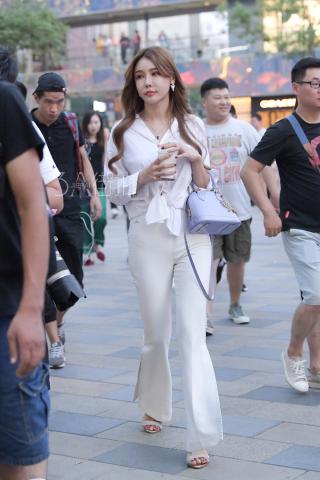 Streetsnap Yu Zhiqing in White Pants 街拍网络嫩模于芷晴时尚白裤