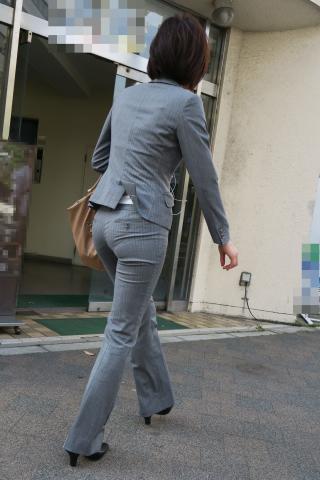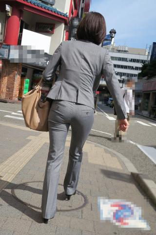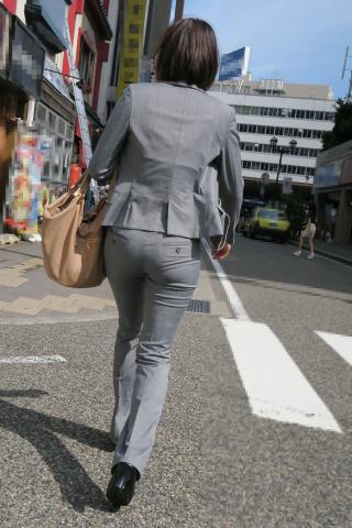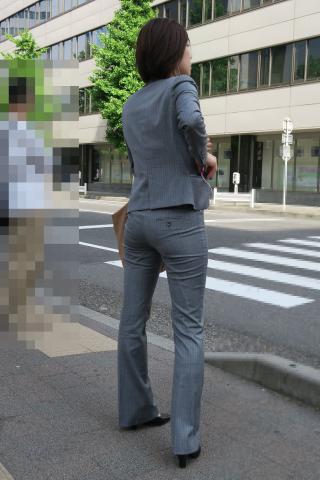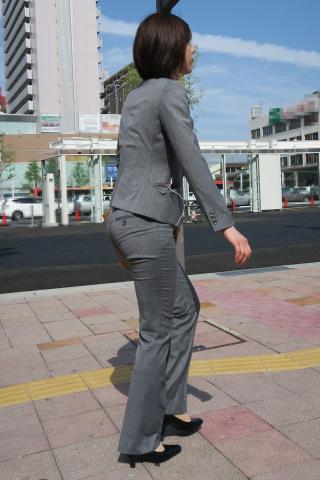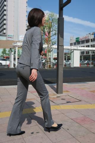 Japanese Streetsnap Gray Pantsuit 素人エロ街撮り盗撮OLさんのパンツスーツのお尻